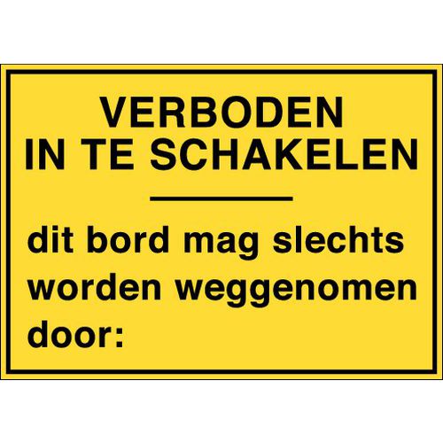| Productnaam | Verbodsbord, Norm ISO 7010: ja, Paneel vorm: Rechthoek, Opdruk: Verboden in te schakelen + aanwijzing |