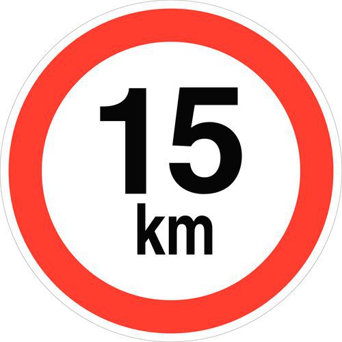 | Productnaam | Verbodspictogram, Paneel vorm: Rond, Type: -, Ø: 200 mm, Materiaal: Polyester, Opdruk: Verbod maximum 15 km/h |