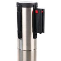 Paal met uittrekbare band en 3 aanhaakpunten. Uittrekbare band met zelfremmend systeem: trekt niet opeens hard in bij het losmaken. Sokkel met rubberen poten voor meer stabiliteit. Mogelijkheid om de palen aan elkaar vast te maken.