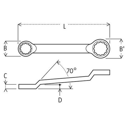 Verdiepte ringsleutel serie 55 - Maat 6x7 tot 13x17 mm Verdiepte ringsleutel serie 55 - Maat 6x7 tot 13x17 mm