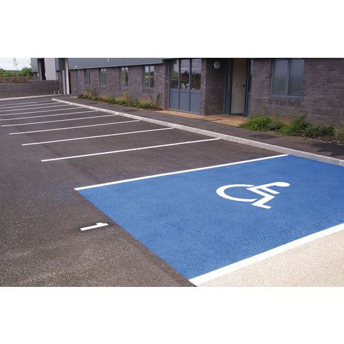 - Met deze wegenverf kunt u uw parkeerplaatsen voor personen met beperkte mobiliteit markeren, zodat ze voor iedereen zichtbaar zijn.
