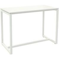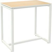 Vergadertafel, hoog, eenvoudig en modern ontwerp. Metalen structuur garandeert een perfecte stevigheid. Met het dikke blad van gemelamineerd hout biedt de tafel comfort en warmte.
