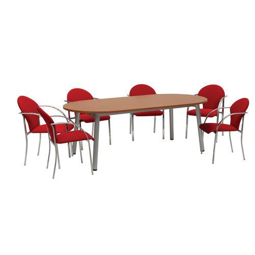 | Productnaam | Vergaderset, Breedte: 210 cm, Vorm: Ovaal, Tafelblad kleur: Teak, Stoel kleur: Rood, Type: Ovaal |