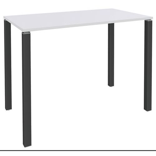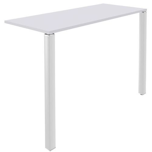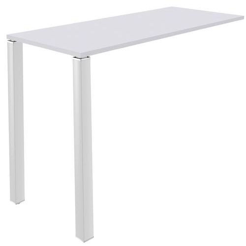 Handige vergadertafel Lounge met 2 poten. Kan dienst doen als verlenging of afzonderlijk worden gebruikt tegen een muur Metalen constructie afgewerkt met epoxylak Blad van spaanplaat, dikte 25 mm Doorsnede poten 61 x 61 mm met stelpoten Voorgeperforeerd blad voor verplaatsing van de bevestigingsplaat. Bevestigingsplaat voor de poten lengte 237 mm, breedte 125 mm. De 2 poten worden onder het blad geplaatst, naar keuze in de diepterichting of de lengterichting van het blad. Monteerklaar geleverd met handleiding.