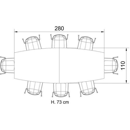 Vergadertafel Tonvormig lengte 280 cm, Type onderstel: 2 poten, Hoogte: 73 cm, Breedte: 280 cm Vergadertafel Tonvormig lengte 280 cm, Type onderstel: 2 poten, Hoogte: 73 cm, Breedte: 280 cm