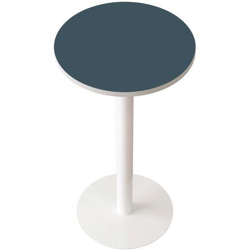 25 mm dik melamine blad met 2 mm ABS rand Hoogte tafelblad 110 cm Wit epoxy gelakt stalen onderstel. Centraal onderstel op krasvast wit epoxygelakt stalen onderstel. Voet Ø 49,5 cm, dikte 4 mm. Geleverd klaar om te passen met instructies.