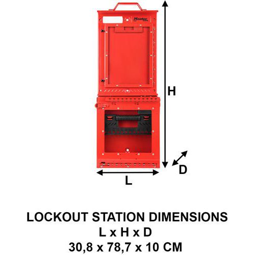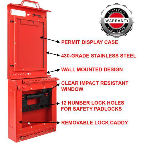De groepsvergrendelingsbox bevat een caddy voor 12 hangsloten, een verwijderbare slothouder en 12 externe gaten voor persoonlijke hangsloten, plus één voor een controlehangslot.