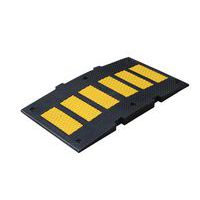 - Verkeersdrempel met hoge zichtbaarheid, ontworpen voor het verlagen van de snelheid van verkeer in de omgeving van bijvoorbeeld ziekenhuizen, medische instellingen of luchthavens. Met brede reflecterende antislipbanden klasse 1 en H-verbindingen om de drempels onderling te verbinden, voor extra stevigheid. Gemaakt van onbewerkt gevulkaniseerd rubber en geschikt voor doorgang van vrachtwagens van 40 ton, bestand tegen vetten, basen en zuren. Langdurig contact met koolwaterstoffen vermijden.