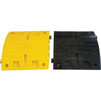 - Modulaire verkeersdrempel met hoge zichtbaarheid, ideaal voor het verlagen van de snelheid op rijbanen op privéterreinen. Hoogte van 55 mm om de snelheid van verkeer te verlagen tot 30 km/u. Met reflecterende banden en reflectoren voor betere zichtbaarheid en 2 kabeldoorgangen met een diameter van 30 mm. Bestand tegen voertuigen tot 40 ton en bestand tegen vetten, basen en zuren. Gemaakt van rubber.