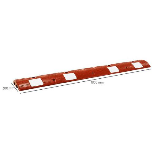Verkeersdrempel met eindstuk rood/wit, Lengtes: 1830 mm, Breedte: 300 mm, Hoogte: 75 mm, Kleur: Rood/wit Verkeersdrempel met eindstuk rood/wit, Lengtes: 1830 mm, Breedte: 300 mm, Hoogte: 75 mm, Kleur: Rood/wit