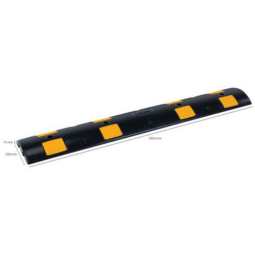 Verkeersdrempel uit één stuk met lange module. Met 8 reflectoren. Zowel overdag als 's nachts optimaal zichtbaar. Maximale snelheid 10 km/h.