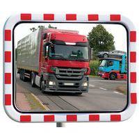 Verkeersspiegel polycarbonaat met rood/wit frame, Bewakingsradius: 27 m, Vorm: Rechthoek Verkeersspiegel polycarbonaat met rood/wit frame, Bewakingsradius: 27 m, Vorm: Rechthoek