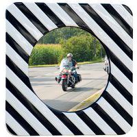 Verkeersspiegel om de veiligheid te verbeteren en gevaren in potentieel gevaarlijke gebieden te verminderen. Zeer resistent: getest tegen harde winden van kracht 12 (orkaan groter dan 117 km/u). Vierpuntsbevestiging voor paal of wand met kogelgewricht, sterker dan een conventionele bevestiging. Zwart/wit frame om de aandacht van bestuurders te trekken. Polycarbonaat versie: bijna onbreekbaar.