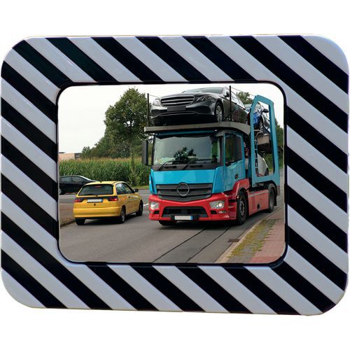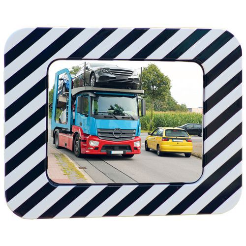 Verkeersspiegel rvs vorstvrij, zwart/wit frame, Bewakingsradius: 22 m, Vorm: Rechthoek
