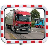 Verkeersspiegel om de veiligheid te verbeteren en gevaren in potentieel gevaarlijke gebieden te verminderen. Zeer resistent: getest tegen harde winden van kracht 12 (orkaan groter dan 117 km/u). Vierpuntsbevestiging voor paal of wand met kogelgewricht, sterker dan een conventionele bevestiging. Zwart/wit frame om de aandacht van bestuurders te trekken. Rvs uitvoering: bestand tegen hoge temperaturen
