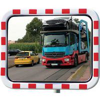 Verkeersspiegel acryl met rood/wit frame, Bewakingsradius: 32 m, Vorm: Rechthoek, Frame kleur: Rood/wit