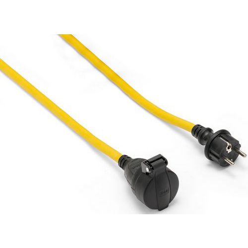 Verlengsnoer voor bouwplaats van 10 of 20 meter (afhankelijk van versie) voor buiten, bouwterreinen, tuinen, vochtige omgevingen, binnen of industrieterreinen. Robuust verlengsnoer voor professionals. Dankzij de robuuste kap en beschermingsklasse IP44 is de voedingskabel perfect voor gebruik buiten of in vochtige omgevingen. Beschermingsklasse: IP44. Kabeltype: H07RN-F 3G1,5, doorsnede van geleider: 2,5 mm². Puur koper. Franse standaardstekker en -stekkerbus. NF-gecertificeerd. Gele kabel met hoge zichtbaarheid: praktisch voor de bouwplaats, onmiddellijk zichtbaar en voorkomt ongevallen of onbedoeld doorsnijden. Exclusief van STAK.