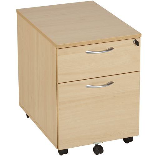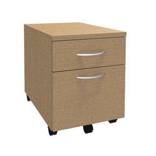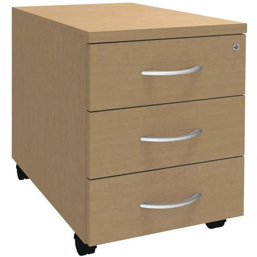 Laden die selectief openen, antikantelbeveiliging Laden op rollengeleiders. Centraal slot met inklapbare sleutel. Uitneembare pennenlade in bovenste lade. Model met 2 laden (waarvan 1 voor hangmappen) met 5e wiel en antikantelbeveiliging) of 3 laden. L/H/D: 43 x 60 x 56 cm. Geproduceerd in Frankrijk. Gemonteerd geleverd.