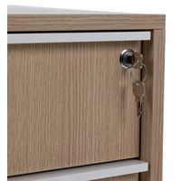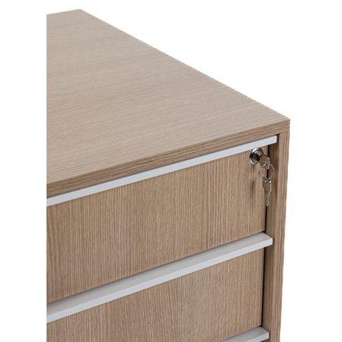 Verrijdbaar ladeblok Misao van melamine met een rand van 1 mm. 3 laden van melaminepaneel. De lades zijn 8,6 cm hoog en hebben een breedte van 50 cm. Centrale vergrendeling zonder kantelbeveiliging. Handgreep van geprofileerd en geanodiseerd aluminium. Maximale belasting voor elke lade: 25 kg. Zwenkwielen met een diameter van 37 mm. Gemaakt in de EU Klantgarantie : 10 jaar