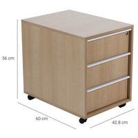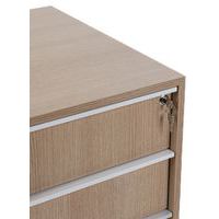 Verrijdbaar ladeblok Misao van melamine met een rand van 1 mm. 3 laden van melaminepaneel. De lades zijn 8,6 cm hoog en hebben een breedte van 50 cm. Centrale vergrendeling zonder kantelbeveiliging. Handgreep van geprofileerd en geanodiseerd aluminium. Maximale belasting voor elke lade: 25 kg. Zwenkwielen met een diameter van 37 mm.