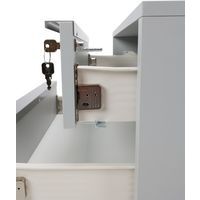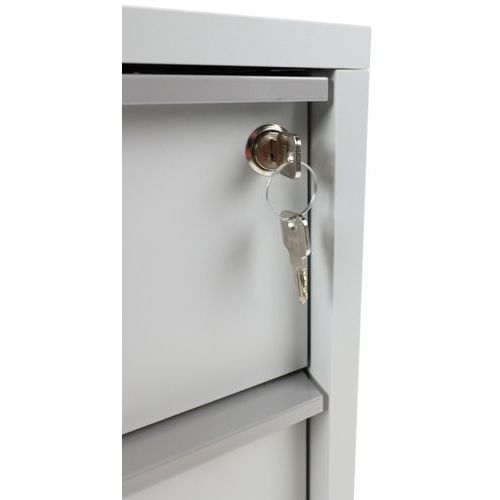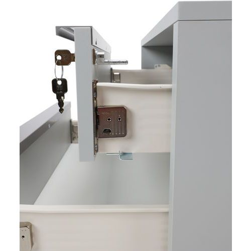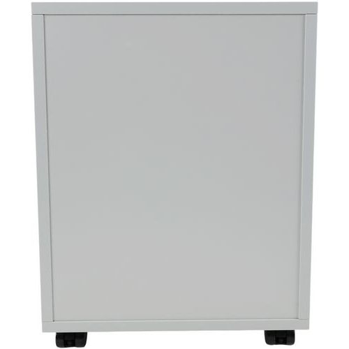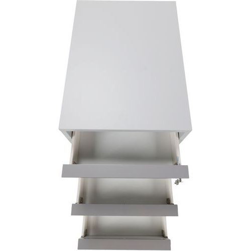Verrijdbaar ladeblok Misao van melamine met een rand van 1 mm. 3 laden van melaminepaneel. De lades zijn 8,6 cm hoog en hebben een breedte van 50 cm. Centrale vergrendeling zonder kantelbeveiliging. Handgreep van geprofileerd en geanodiseerd aluminium. Maximale belasting voor elke lade: 25 kg. Zwenkwielen met een diameter van 37 mm. Gemaakt in de EU Klantgarantie : 10 jaar