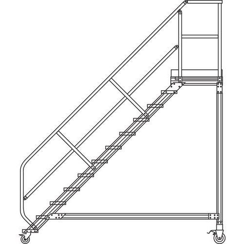 Eenvoudig verplaatsbaar. Rolplatform beveiligd met 2 leuningen en reling aan 3 zijden. Treden vast te schroeven. Product gefabriceerd in Frankrijk.