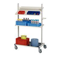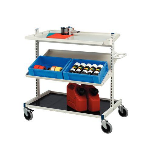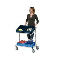 Handige bijzettafel voor uw euronormbakken. In hoogte verstelbare legborden voor meer flexibiliteit. Hellingshoek legbladen in drie standen (0°, 10° of 20°). Legborden met afrolrand aan alle zijden. Wielen met rubber loopvlak voor soepel verplaatsen.