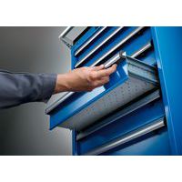Grote stabiliteit van het geheel met een draagvermogen tot 4 t, laden met een draagvermogen tot 75 of 200 kg Optimaal gebruik dankzij de totale uitbreiding en de optimale hoogte aan de voorzijde van de laden Uitstekende bescherming tegen stof, vloeistoffen en mechanische slijtage dankzij een gesloten geheel met een oppervlak dat bestand is tegen schokken en slijtage Onfeilbare veiligheid met anti-losmaaksysteem dat voorkomt dat de lade eruit valt en met individuele ladeblokkering (antikantelbeveiliging) Bescherming tegen corrosie dankzij een elektrostatische dompellak en spuitlak Optimale opbergmogelijkheden en organisatie dankzij het materiaal voor indeling van LISTA, geschikt voor elke toepassing en dankzij de laden die zijn voorzien van uitsparingen en perforaties Professionele etikettering met de etiketteersoftware van LISTA Script en de inklapbare grijpstang voor de invoering van etiketten Perfect stille verplaatsing dankzij de rail zonder verbindingsstuk