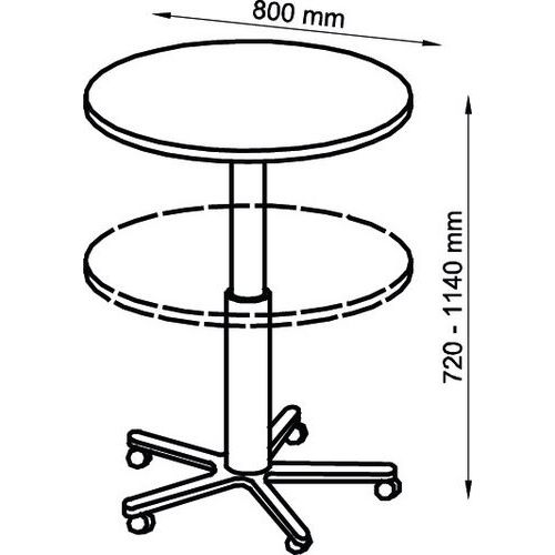 Verrijdbare tafel, in hoogte verstelbaar, Hoogte: 72 cm, Breedte: 80 cm, Vorm: Rond Verrijdbare tafel, in hoogte verstelbaar, Hoogte: 72 cm, Breedte: 80 cm, Vorm: Rond