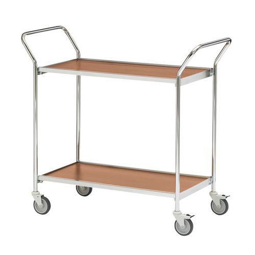 Verrijdbare tafel met grijze afwerking en twee handgrepen - 2 plateaus - draagvermogen 150 kg Verrijdbare tafel met grijze afwerking en twee handgrepen - 2 plateaus - draagvermogen 150 kg