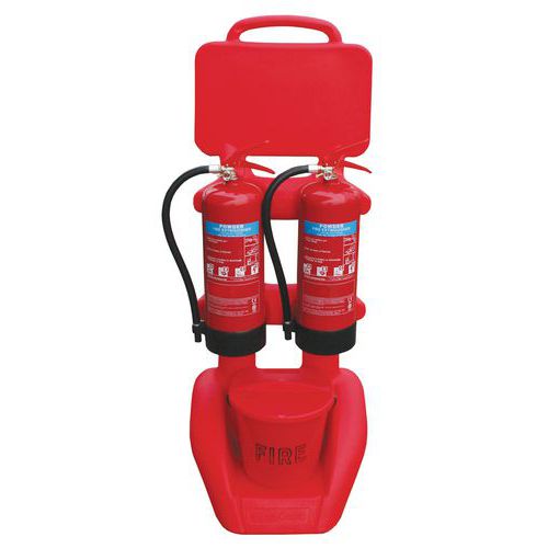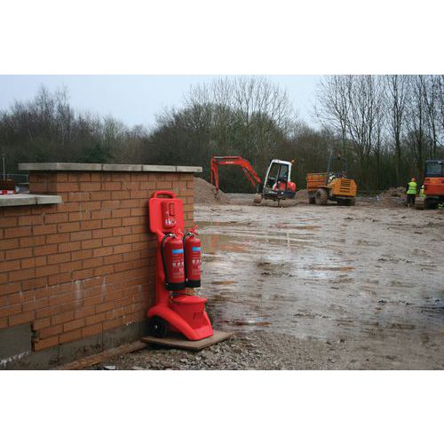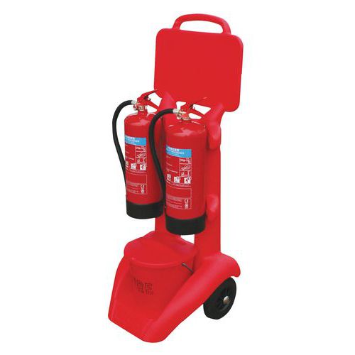 | Productnaam | Verrijdbare wagen voor 2 brandblussers, Materiaal: Polyethyleen van hoge dichtheid, Kleur: Rood |