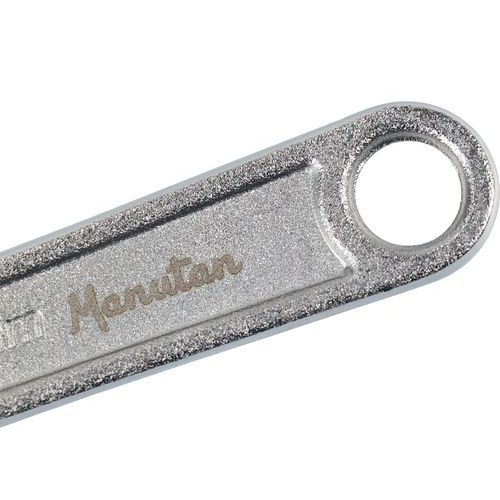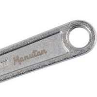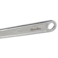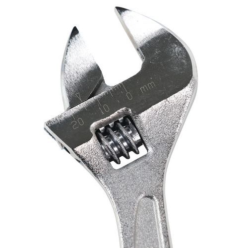 - Verstelbare moersleutel van staal met vanadiumchroom, kleine kop onder een hoek van 15°, tandheugel met niet-uitstekende bek.