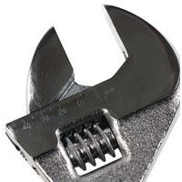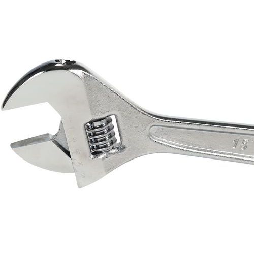- Verstelbare moersleutel van staal met vanadiumchroom, kleine kop onder een hoek van 15°, tandheugel met niet-uitstekende bek.