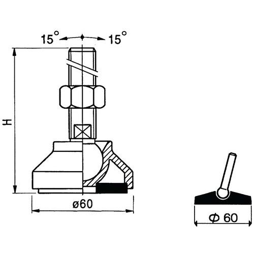 | Productnaam | Verstelbare voet in RVS, Schacht materiaal: Messing, Lengte stang: 48 mm, Hoogte voet: 98 mm, Draad Ø: M16 |