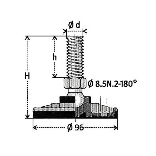 Verstelbare voetplaat in polypropyleen - Waterdicht - Ø 102 mm - 1950 kg - Verzinkt staal