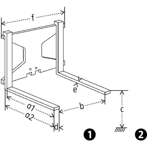 In breedte verstelbare vorken om pallets van verschillende afmetingen te kunnen heffen. Gemaakt in de EU Max. belasting (kg) : 1000 CE