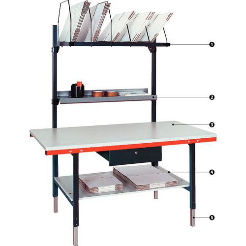 | Productnaam | Verstevigde inpaktafel, Max. belasting: 300 kg, Totale hoogte: 2310 mm, Gewicht: 95.0 kg |