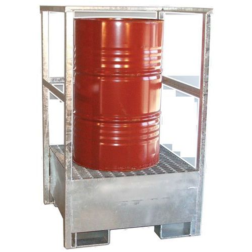 Verticale metalen opvangbak, Vermogen (aantal vaten): 1, Roostermat: ja, Inhoud opvangbak: 220 L Verticale metalen opvangbak, Vermogen (aantal vaten): 1, Roostermat: ja, Inhoud opvangbak: 220 L
