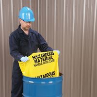 Verzamelzak bestand tegen chemische producten en tegen scheuren. Waarschuwingsbericht opgepast om aan te geven dat het opgehaalde afval gevaarlijk is. Gemaakt in het UK