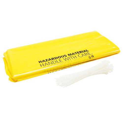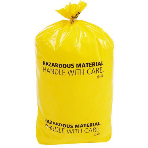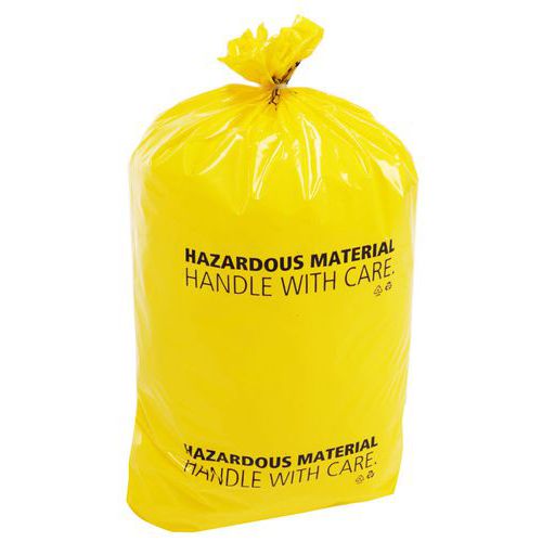 Verzamelzak bestand tegen chemische producten en tegen scheuren. Waarschuwingsbericht opgepast om aan te geven dat het opgehaalde afval gevaarlijk is.