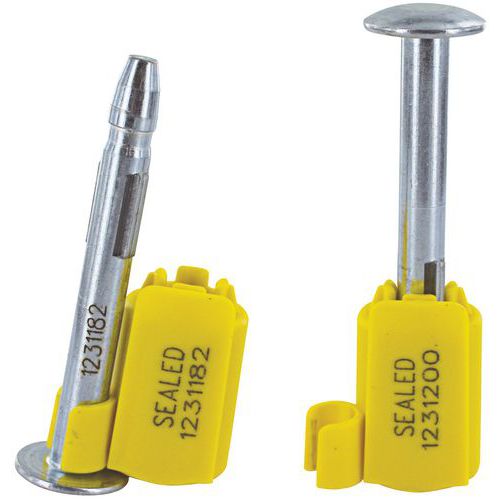 | Productnaam | Verzegeling met dubbele nummering voor containers, Kleur: Geel, Totale lengte: 79 mm, Stang Ø: 8 mm |