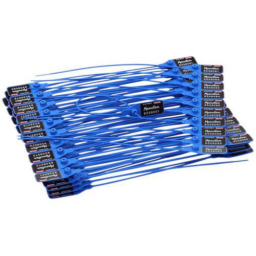 Verzegeling voor vrachtwagens, Kleur: Blauw, Totale lengte: 285 mm, Nuttige lengte: 200 mm, Stang Ø: 2.3 mm Verzegeling voor vrachtwagens, Kleur: Blauw, Totale lengte: 285 mm, Nuttige lengte: 200 mm, Stang Ø: 2.3 mm
