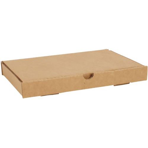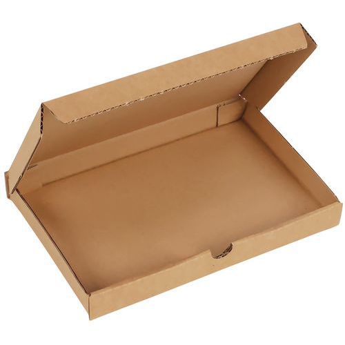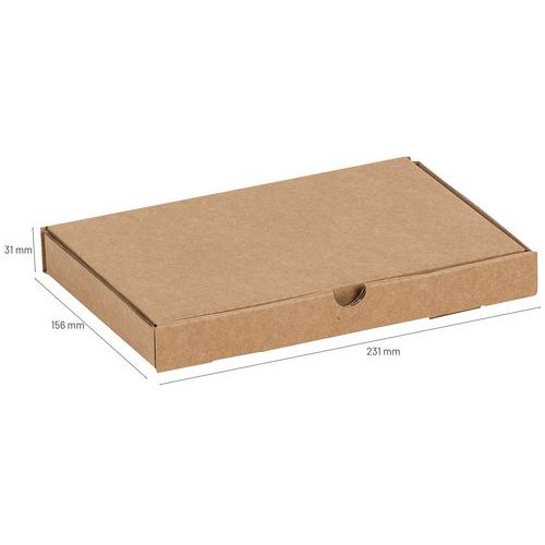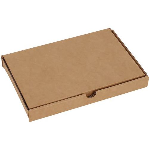 Robuuste verzenddoos van Havanna kraftkarton. Structuur speciaal geschikt voor platte formaten.