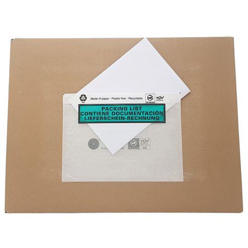 Deze verzendenveloppen van Pac List zijn onmisbaar voor het beschermen en identificeren van documenten. Dankzij het bovenste transparante kristalpapier zijn leveringsbonnen, facturen en handleiding zichtbaar. De verzendenveloppen van Pac List worden volledig van papier gemaakt en zijn dus milieuvriendelijk: minder plastic en een lagere koolstofvoetafdruk. Deze hoogwaardige verzendenveloppen worden in Frankrijk geproduceerd. Ze hebben een uitstekende hechtkracht op alle oppervlakken, voor een veilige verzending van documenten. Verkrijgbaar in meerdere varianten, met of zonder bedrukking, in verschillende talen en verpakkingen. Gemaakt in de EU Klantgarantie : 2 jaar