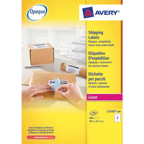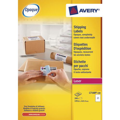 Ideaal etiket voor pakketten of enveloppen van groot formaat. Optimale ondoorzichtigheid dankzij de blauwe tape: dekt perfect de oude opschriften, labels enz. af Compatibel met alle merken laserprinters en gegarandeerd zonder vastlopen.