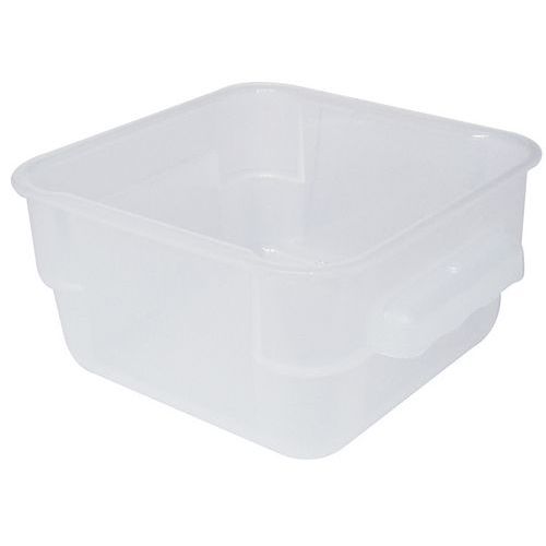 Vierkante bak voor ingrediënten, van polypropyleen, leeg in elkaar te stapelen, stapelbaar wanneer het deksel wordt gebruikt.