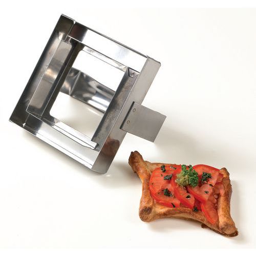 Schuine snijrand, rvs, voor de bereiding van vierkante hapjes, zoals met zeevruchten.