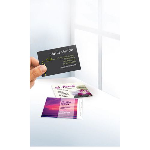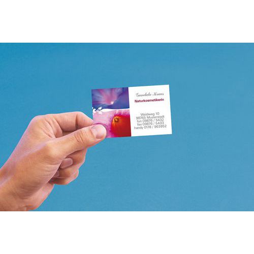 | Productnaam | Visitekaartjes, Gramsgewicht: 185 g/m², Hoogte: 54 mm, Aantal stuks: 250, Breedte: 85 mm |