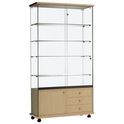 Vitrine Easy E6, Onderstel kleur: Beuken, Hoogte: 182 cm, Breedte: 92 cm, Diepte: 47 cm, Aantal legborden: 4
