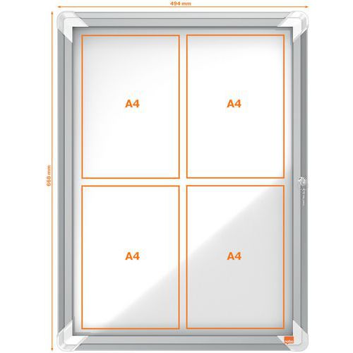 Glazen binnenvitrine afsluitbaar magnetisch Premium Plus A4 - Nobo